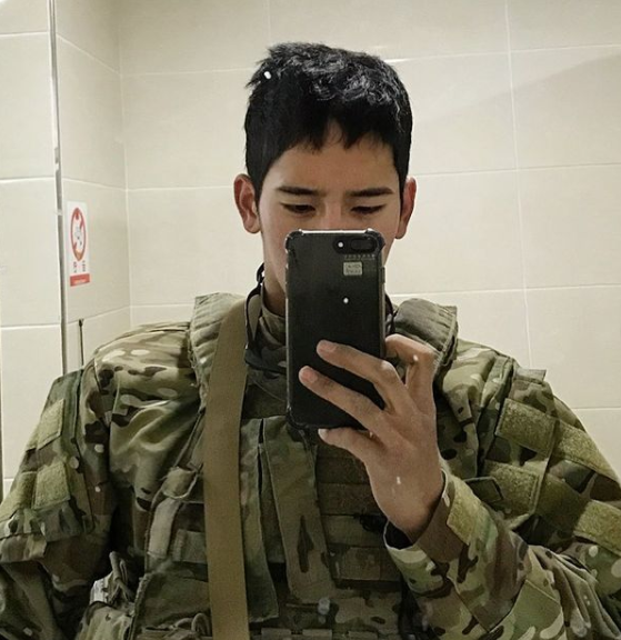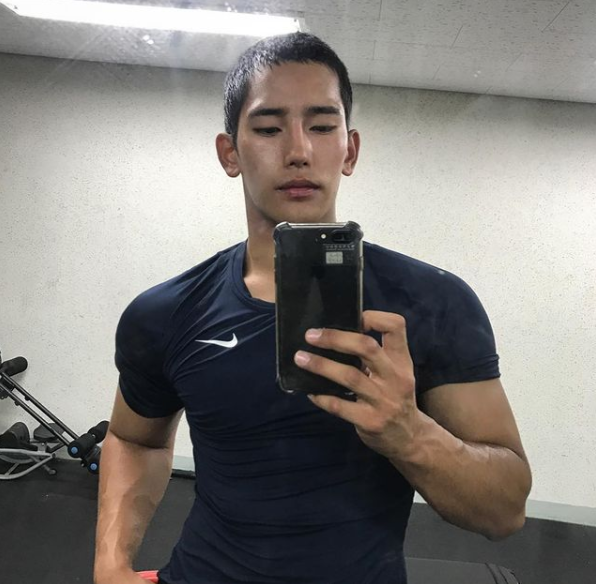 워낙 얼굴이 작으며 떡 벌어진 어깨 피지컬이